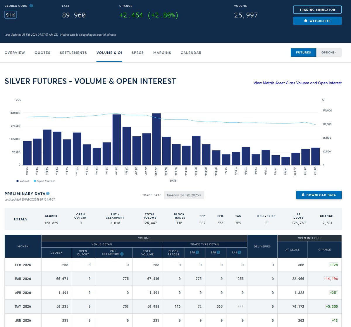 Silver open interest and March deliveries.