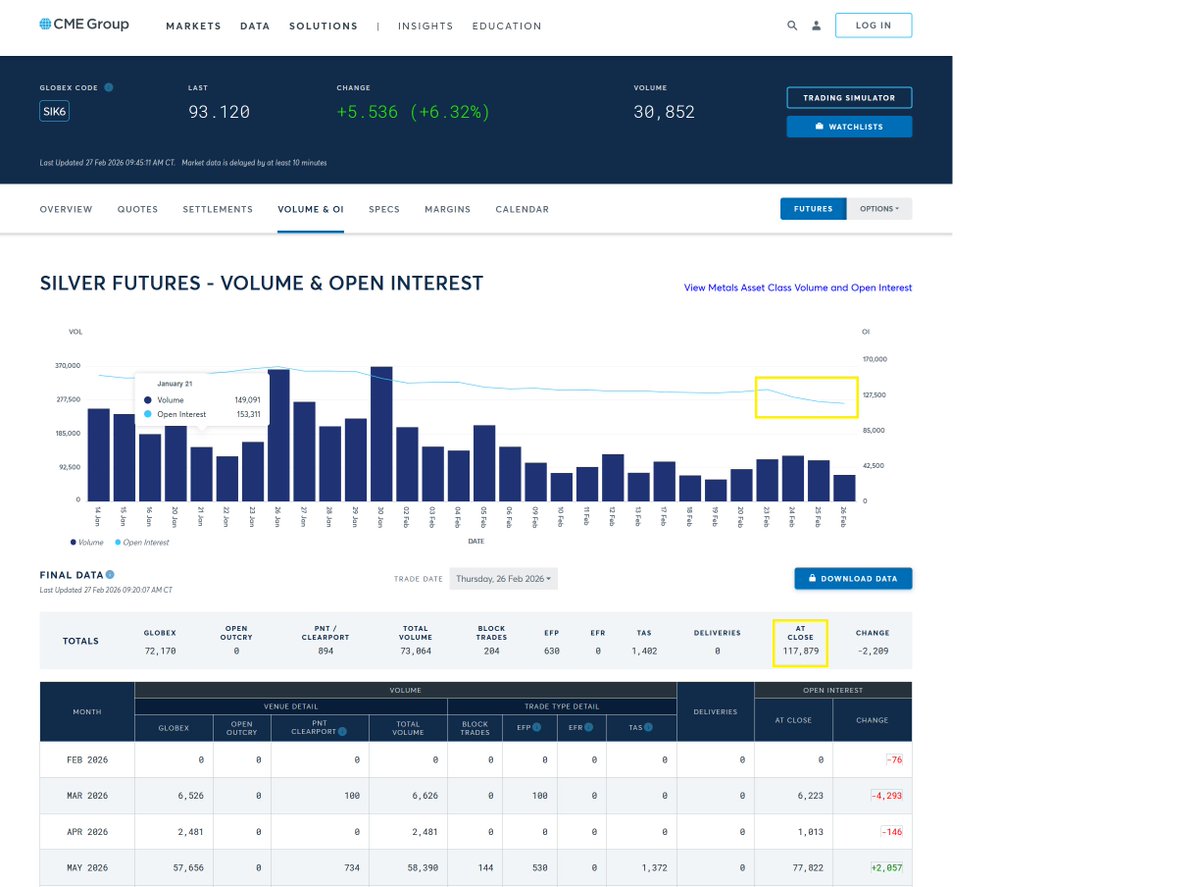 Open interest continues to collapse, now at 117,879 contracts vs a month ago at 161,943 contracts.